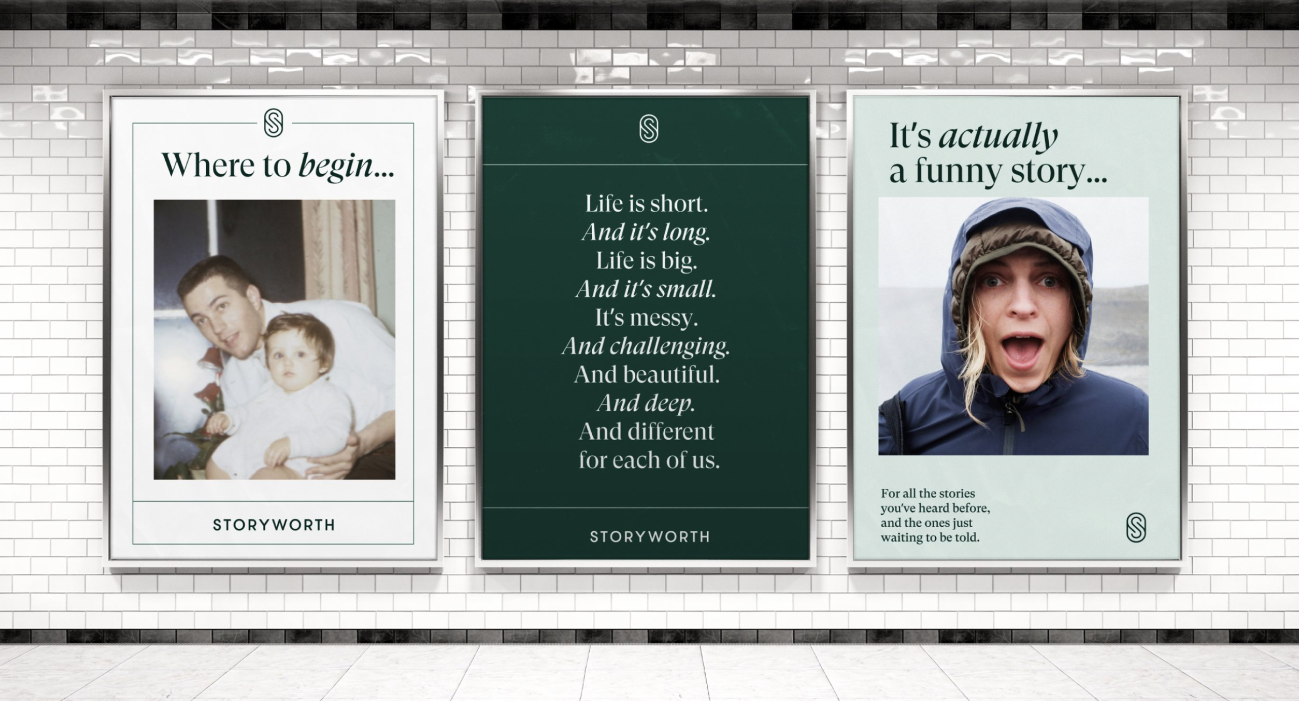Storyworth is a service that makes it easy to write and preserve your most meaningful stories in a beautiful keepsake book. I worked with Paladar Studio, Jessica Strelioff, and the lovely folks at Storyworth to establish their brand positioning and verbal identity, giving voice to the connections we create when we share our stories with loved ones.